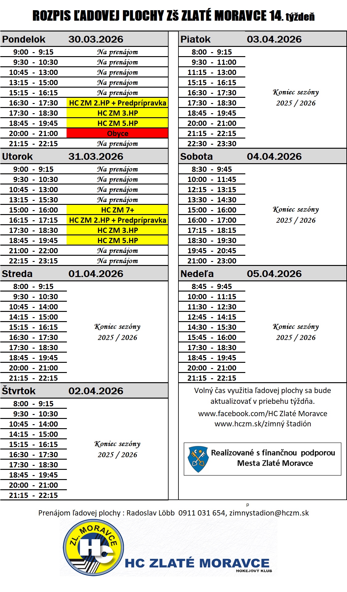 Prosím Vás kedy a ako často bude vyhradená ľadová plocha pre hokejkarov ?