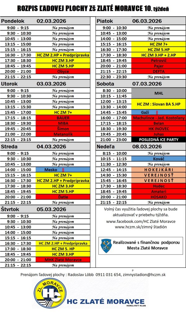 Prosím Vás kedy a ako často bude vyhradená ľadová plocha pre hokejkarov ?