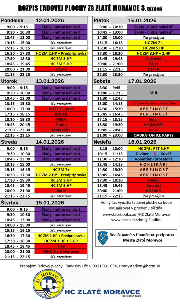 Prosím Vás kedy a ako často bude vyhradená ľadová plocha pre hokejkarov ?